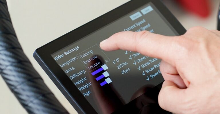 The Heads-up display that comes with the bike is excellent. I have seen other products that have information all over the main display, but with Allerbu all your data is on one screen on the bike, and you can see the route on the TV totally un-cluttered, yet still have the data you want to see available.